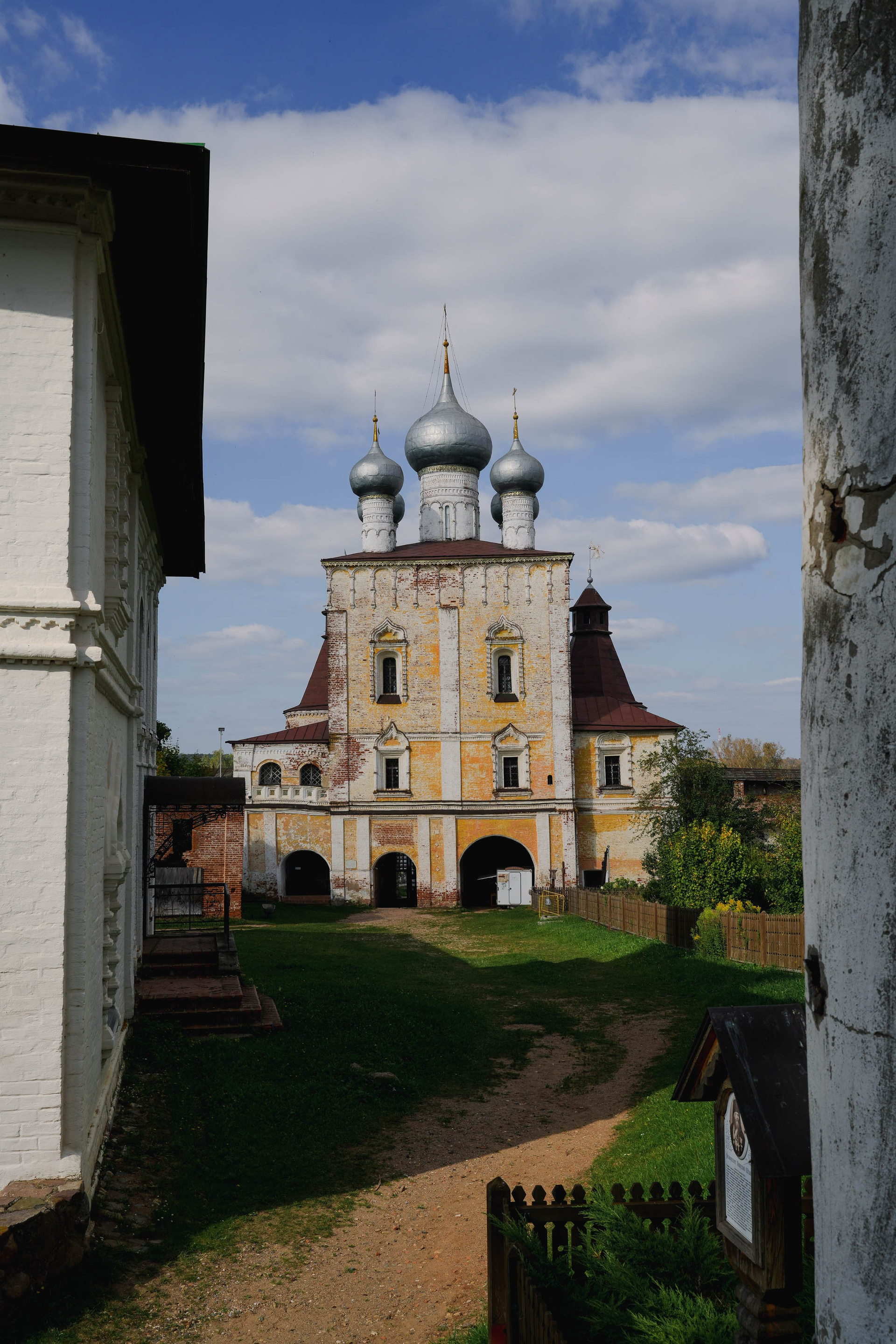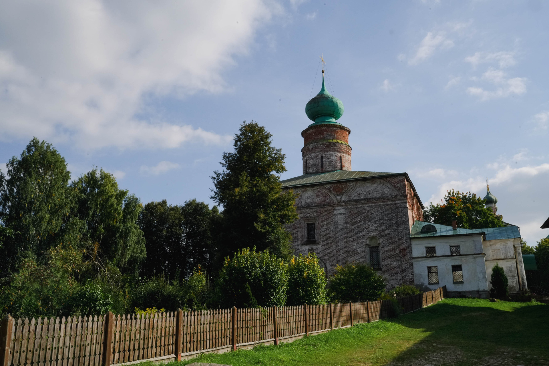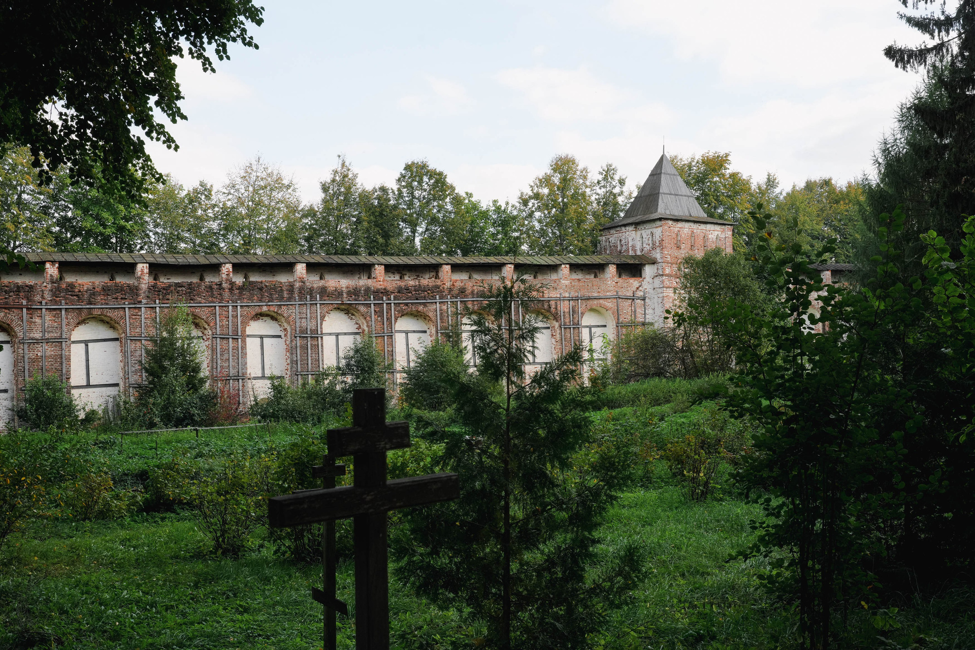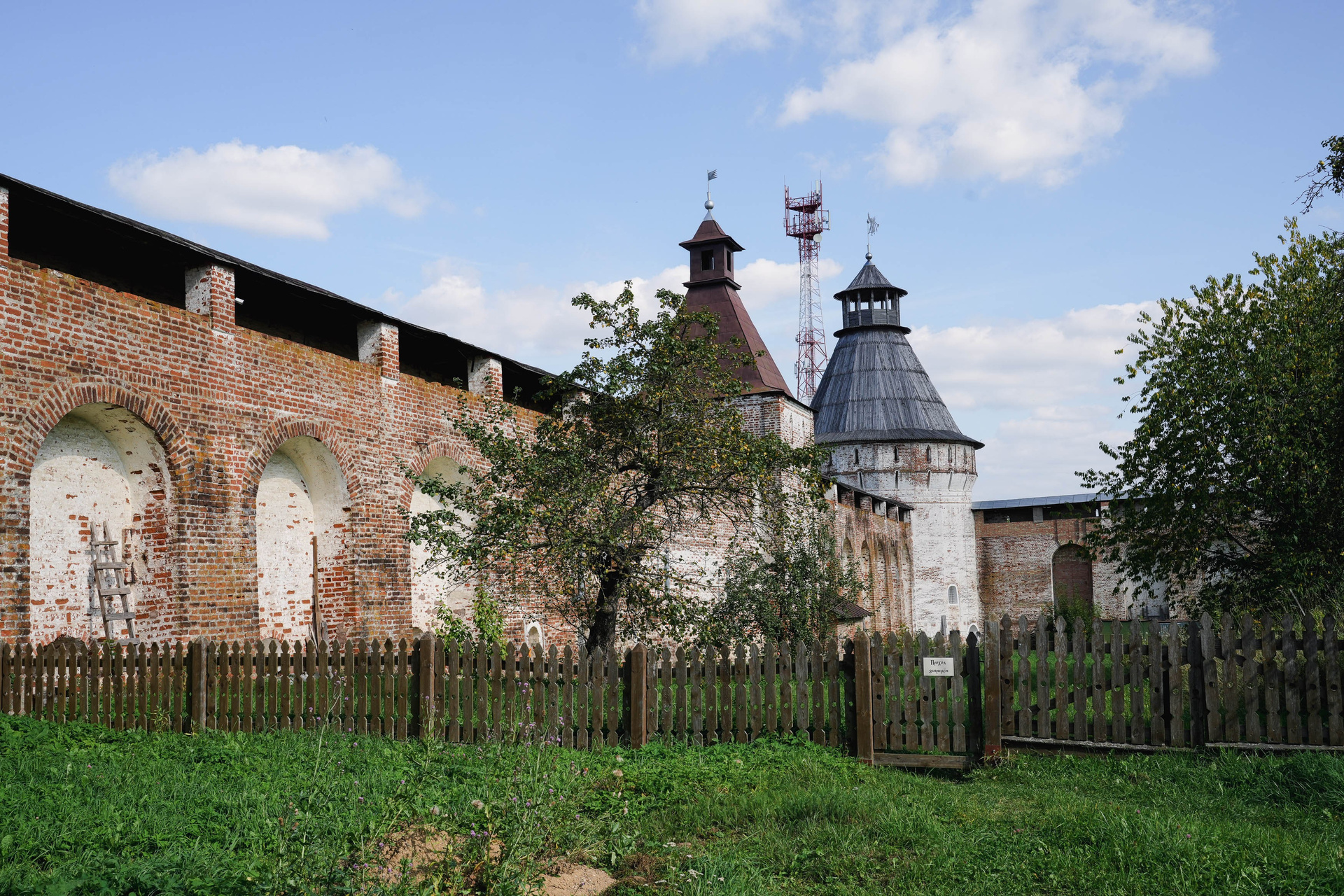 Когда приезжаешь сюда, проходишь под кронами кленов любуясь величием соборов и смотришь на массивные стены, похожие скорее на стены кремля, но никак не монастыря в небольшом поселке, невольно задаешься вопросом, как и почему такой уникальный памятник находится в таком плачевном состояние. У подножия древнего монастыря расположился озон и какие-то небольшие магазинчики, а одна из стен и вовсе грозит упасть.