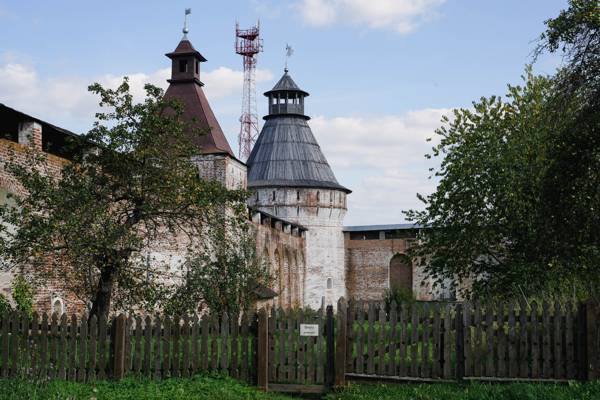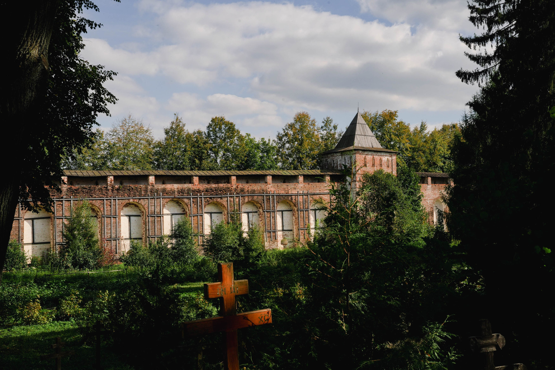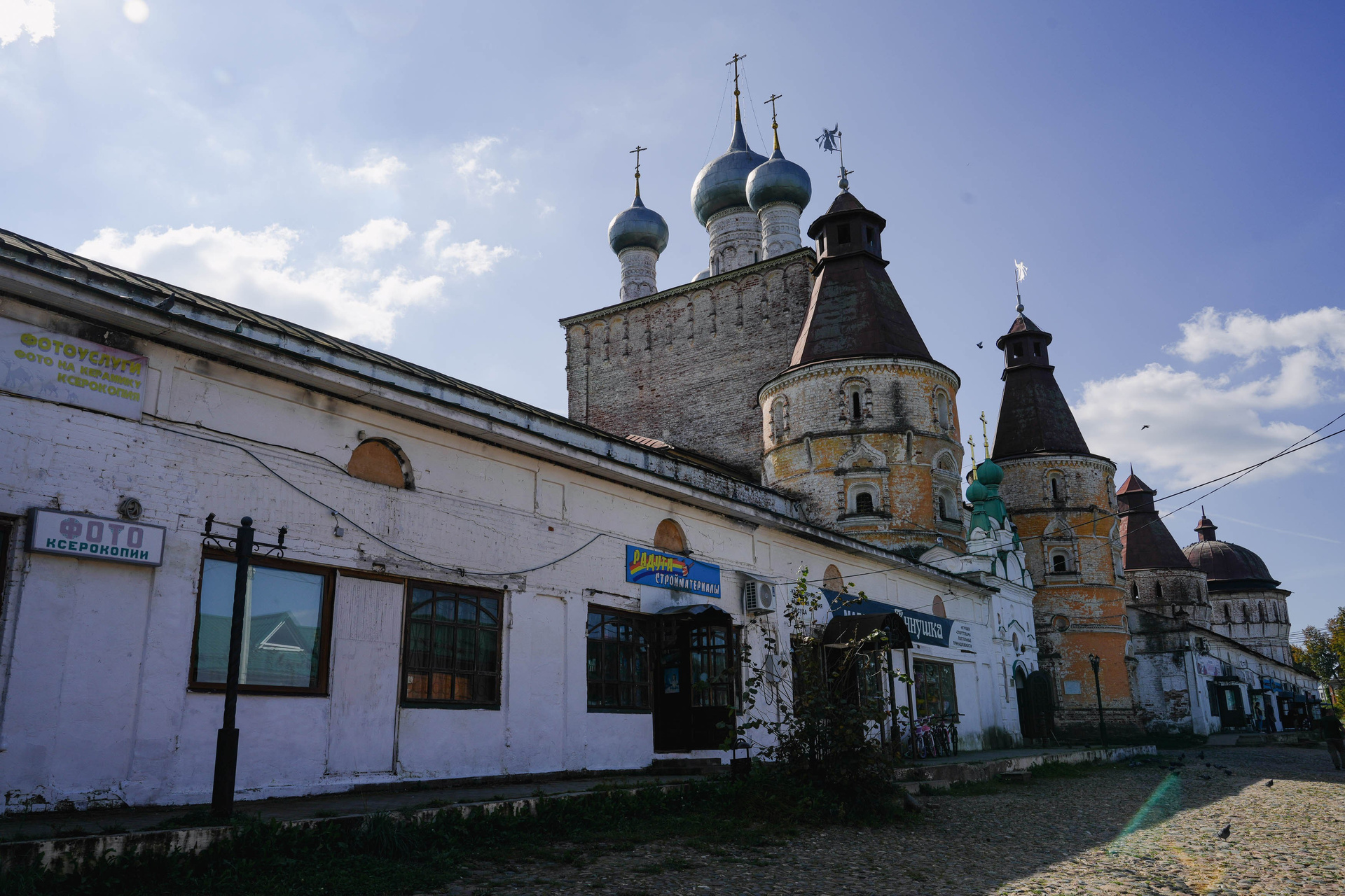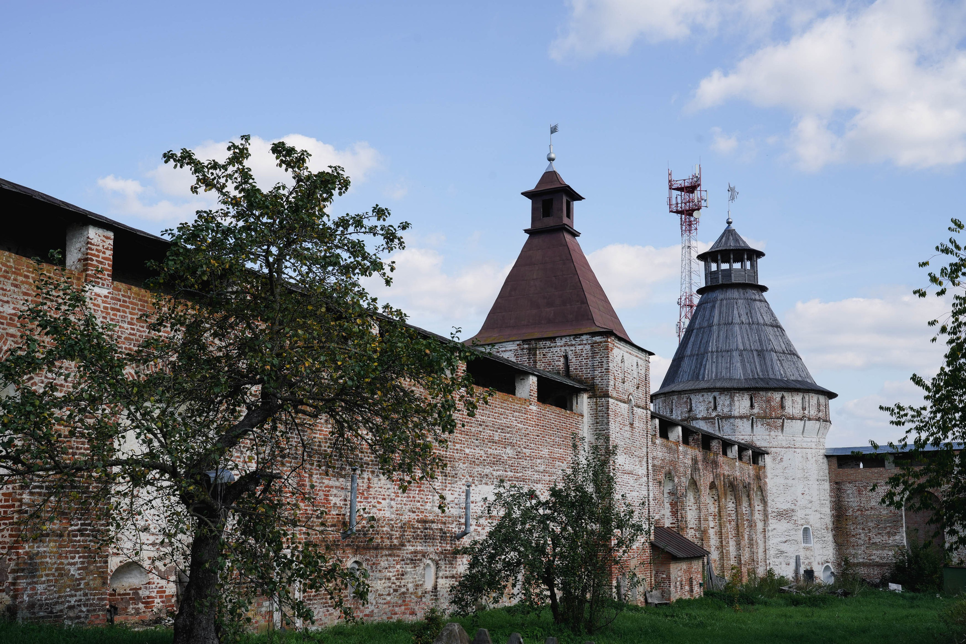 Когда приезжаешь сюда, проходишь под кронами кленов любуясь величием соборов и смотришь на массивные стены, похожие скорее на стены кремля, но никак не монастыря в небольшом поселке, невольно задаешься вопросом, как и почему такой уникальный памятник находится в таком плачевном состояние. У подножия древнего монастыря расположился озон и какие-то небольшие магазинчики, а одна из стен и вовсе грозит упасть.