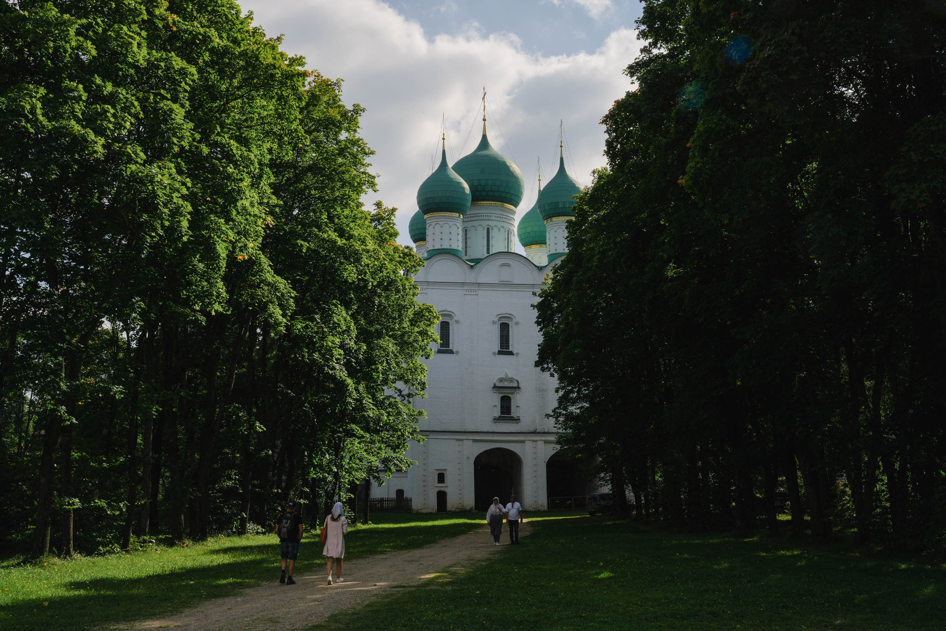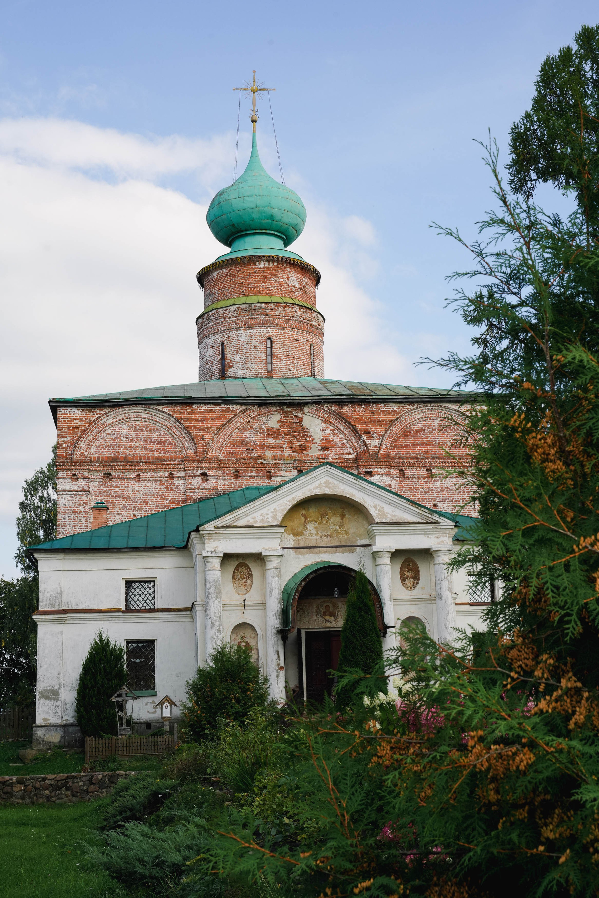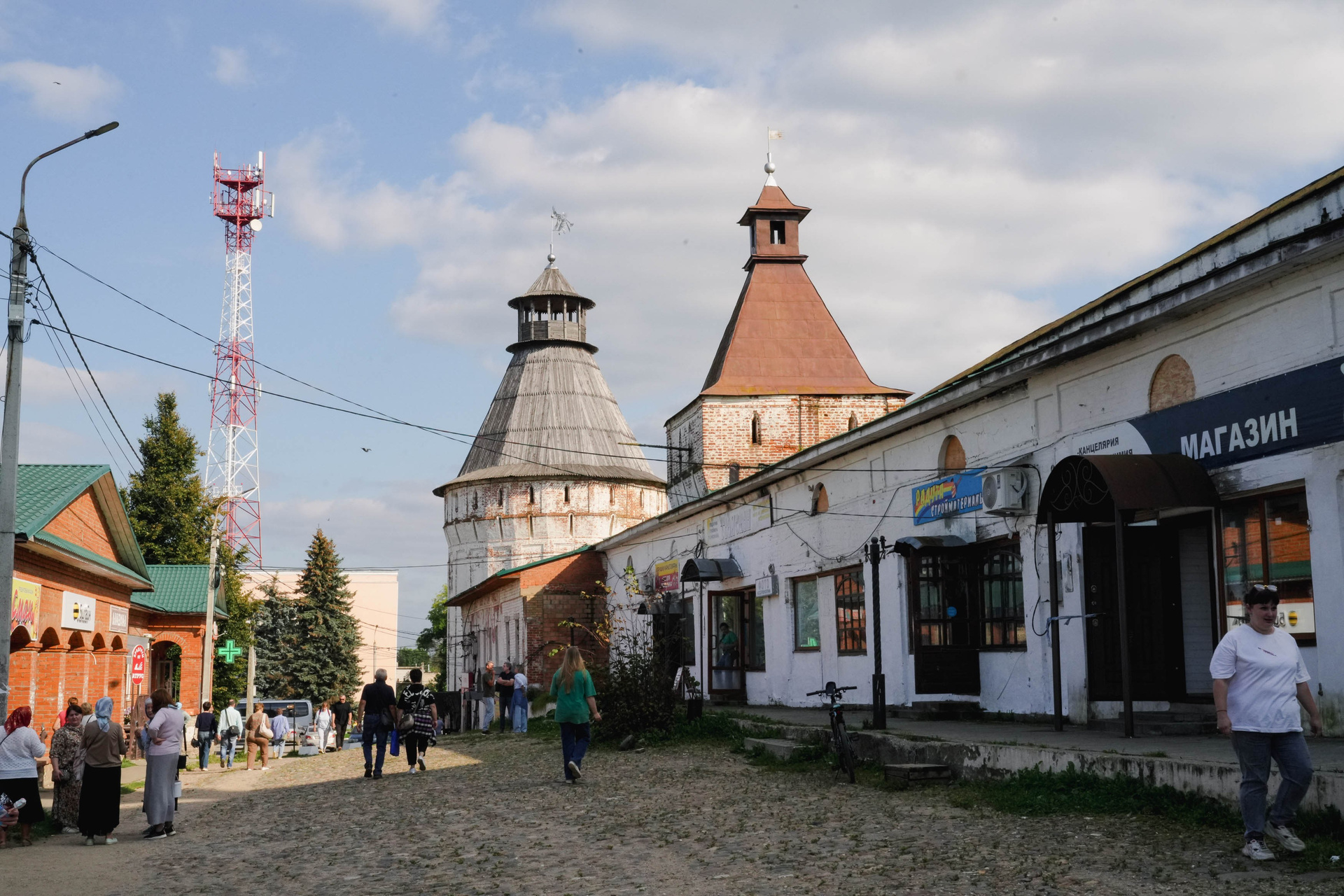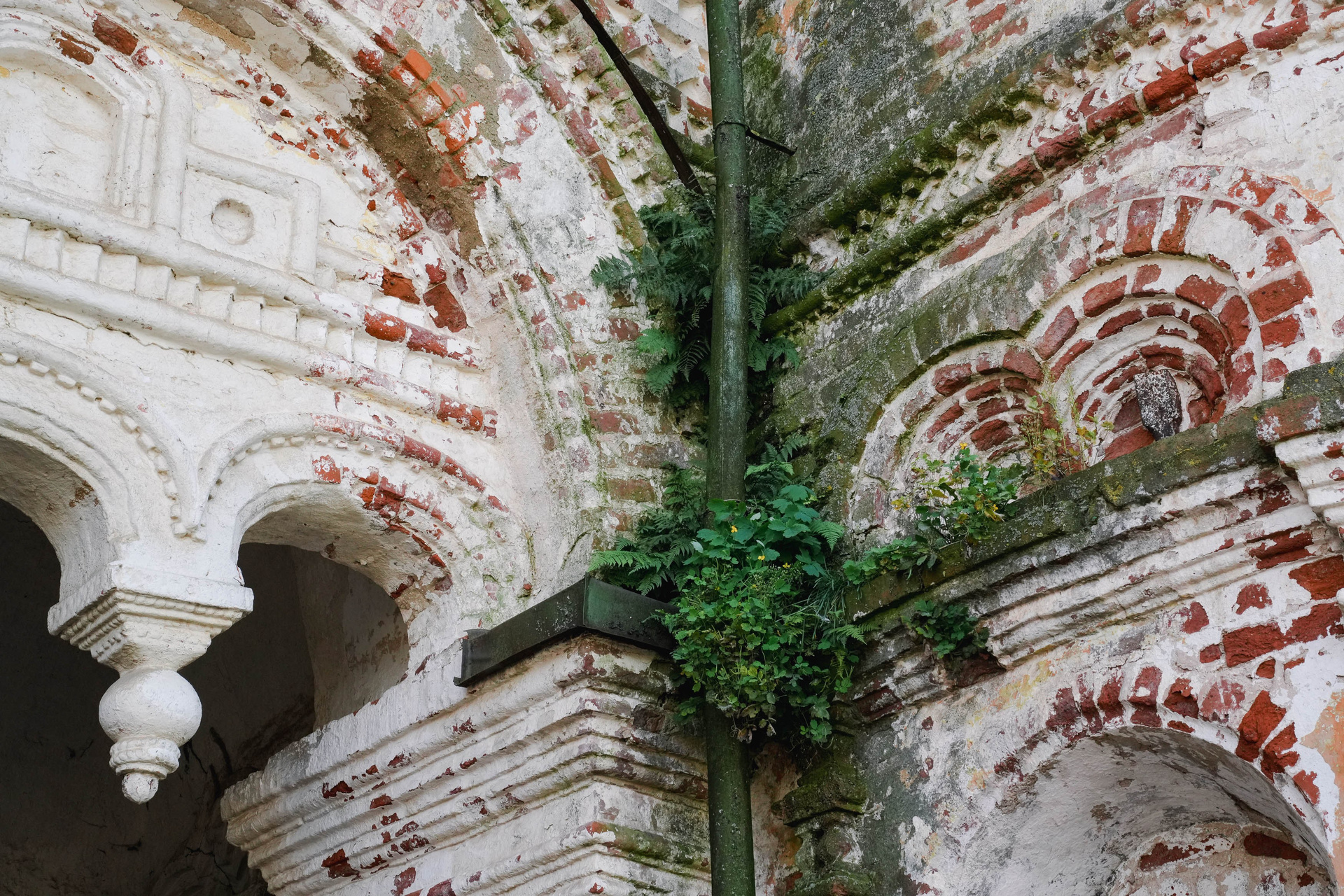 Когда приезжаешь сюда, проходишь под кронами кленов любуясь величием соборов и смотришь на массивные стены, похожие скорее на стены кремля, но никак не монастыря в небольшом поселке, невольно задаешься вопросом, как и почему такой уникальный памятник находится в таком плачевном состояние. У подножия древнего монастыря расположился озон и какие-то небольшие магазинчики, а одна из стен и вовсе грозит упасть.