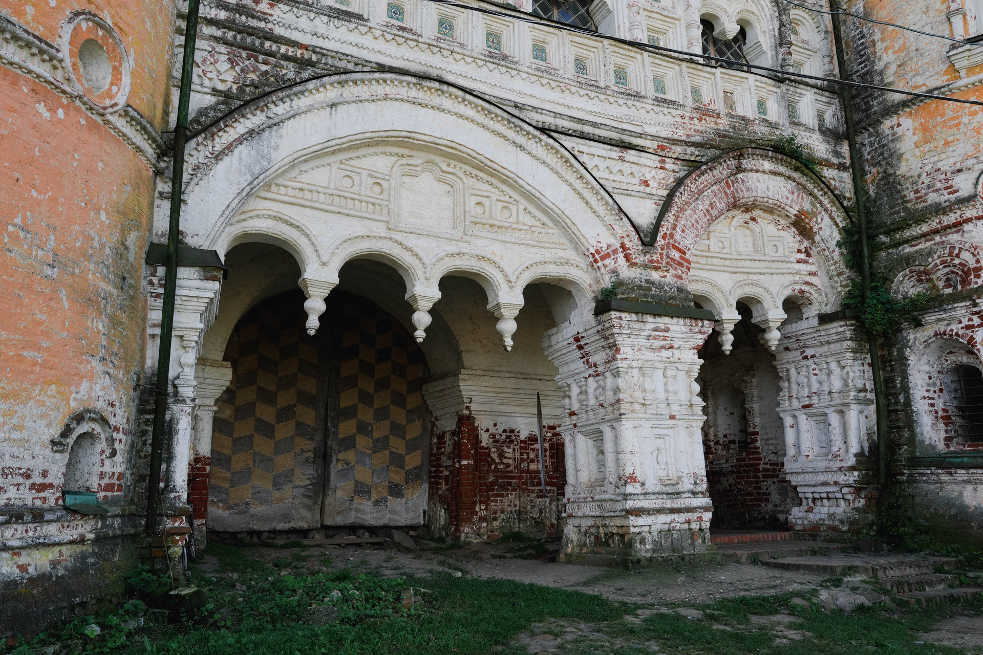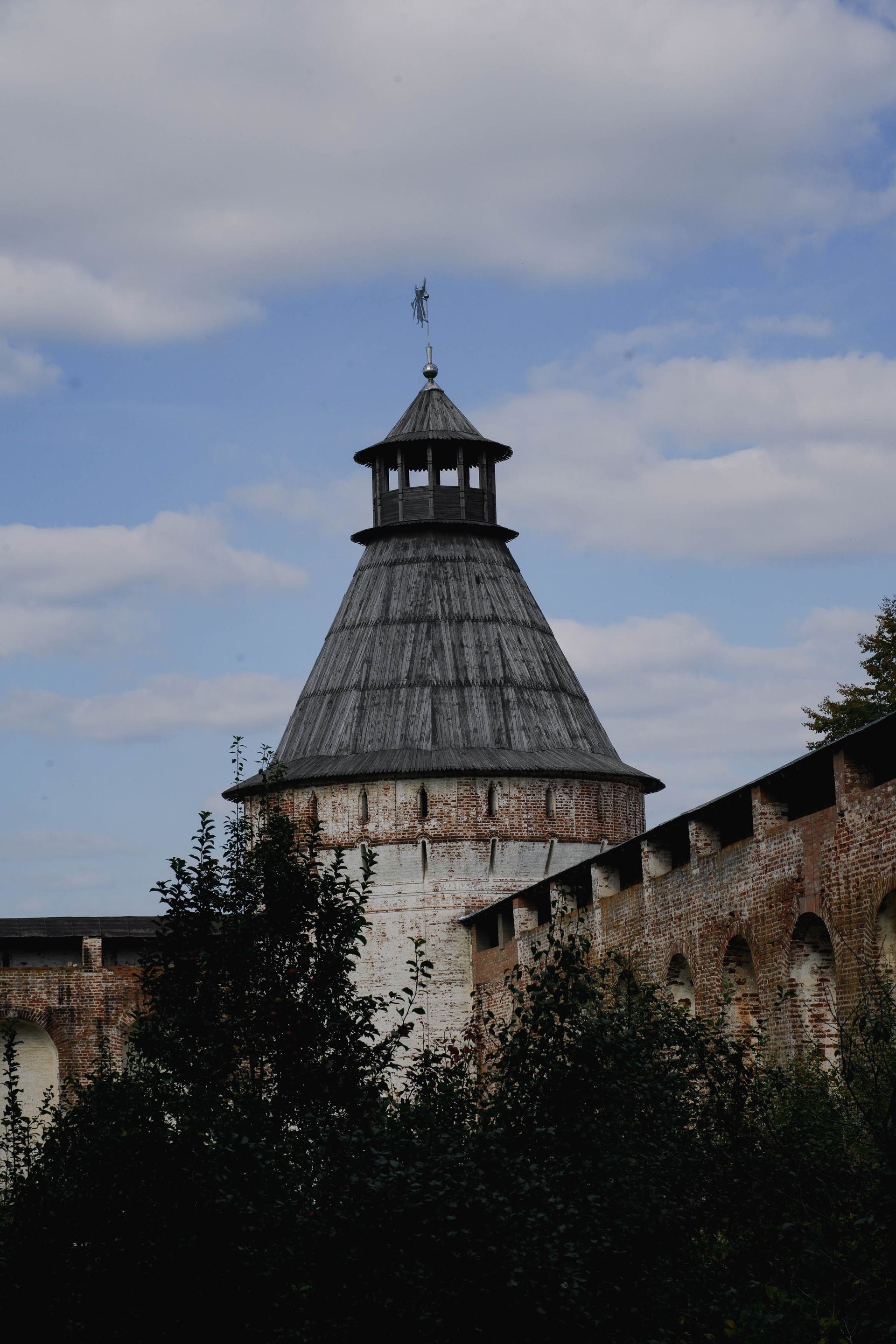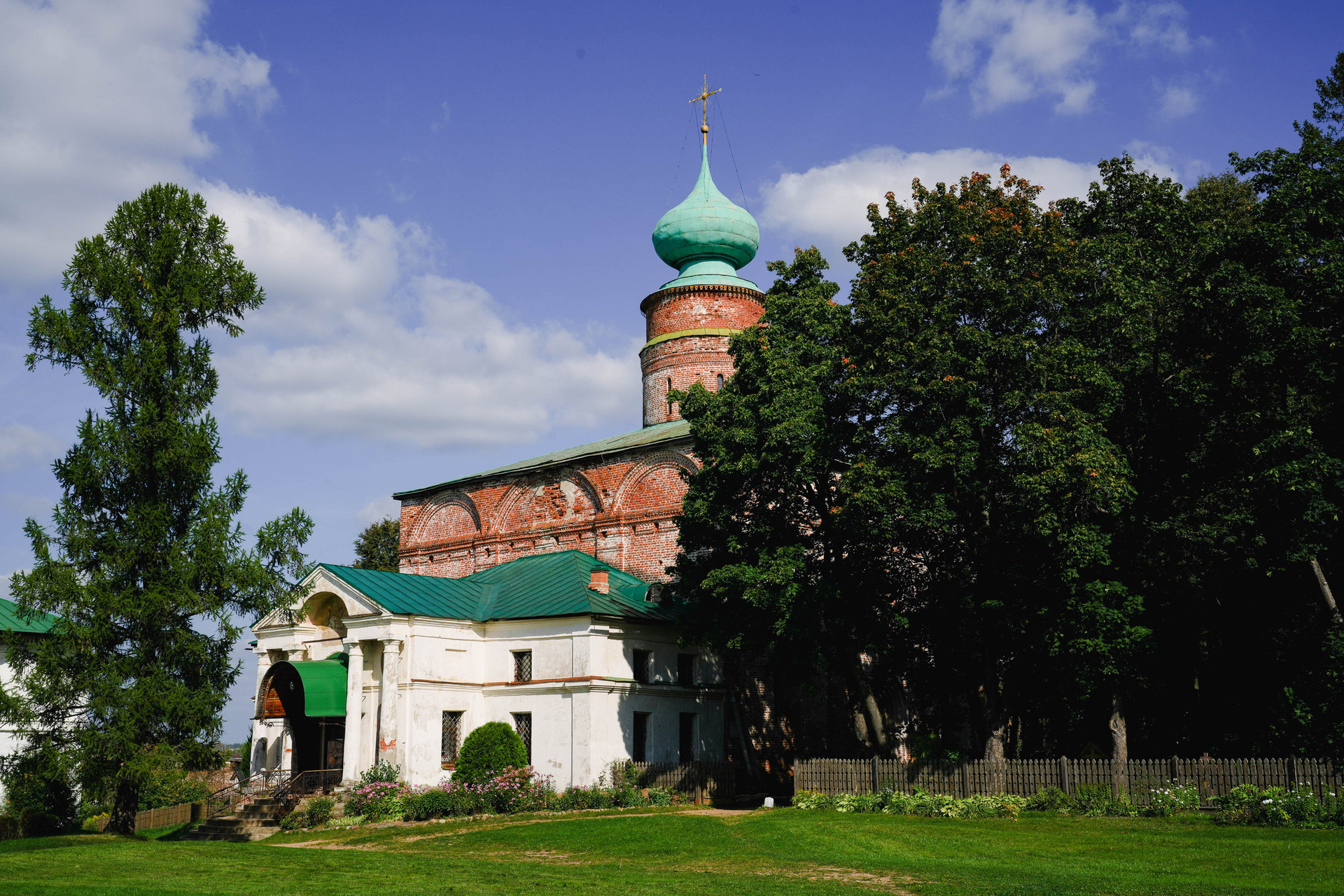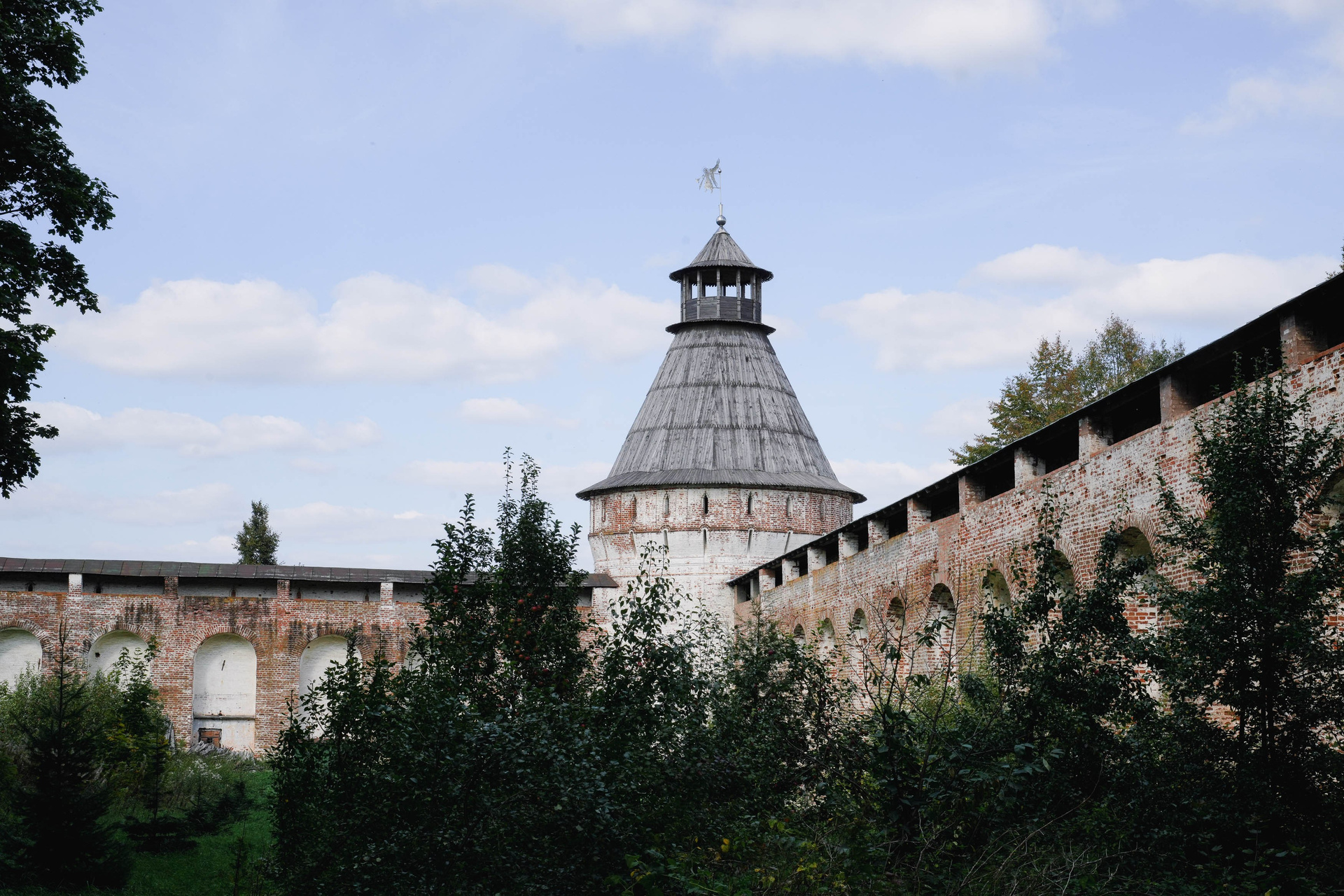 Когда приезжаешь сюда, проходишь под кронами кленов любуясь величием соборов и смотришь на массивные стены, похожие скорее на стены кремля, но никак не монастыря в небольшом поселке, невольно задаешься вопросом, как и почему такой уникальный памятник находится в таком плачевном состояние. У подножия древнего монастыря расположился озон и какие-то небольшие магазинчики, а одна из стен и вовсе грозит упасть.